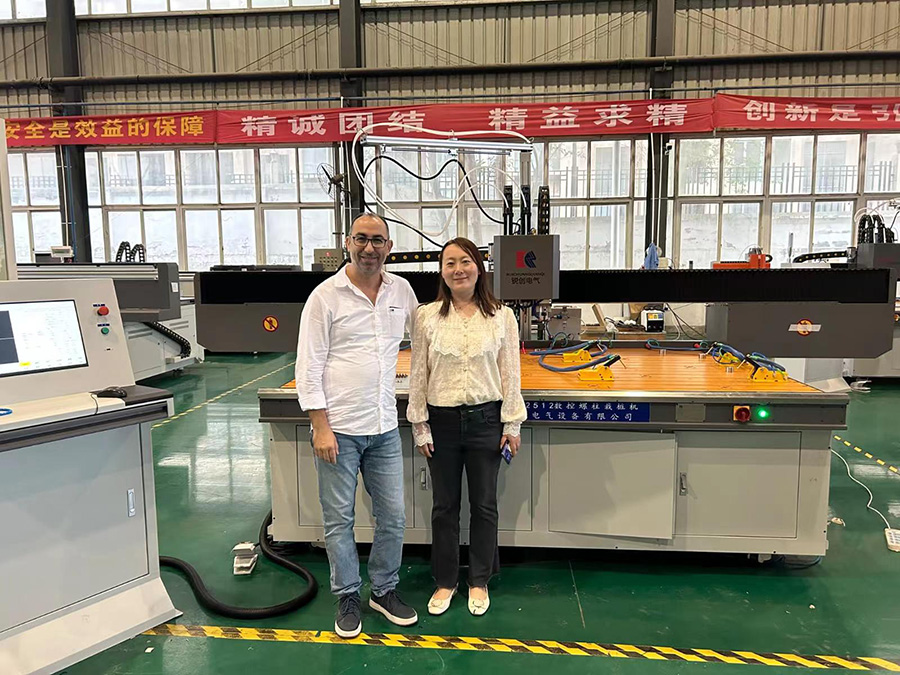 考察數控設備,對工業(yè)機器人的興趣是百分百,對新能源產(chǎn)業(yè)也是流連忘返,在我們準備發(fā)貨的設備前面不走了,一定要拍照留念,讓我們的銷(xiāo)售人員細心介紹每款產(chǎn)品的功能。