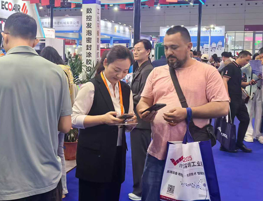 深圳展會(huì )現場(chǎng),前來(lái)參觀(guān)咨詢(xún)的客戶(hù)絡(luò )繹不絕,人和機器根本停不下來(lái)。